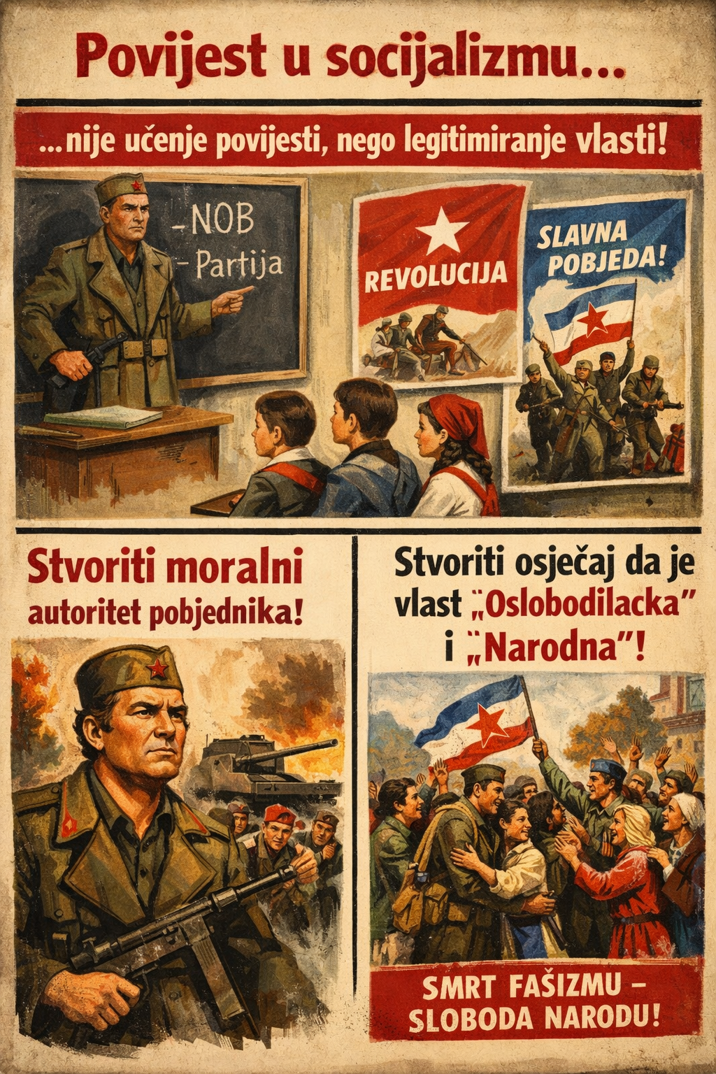 1) Povijest se u socijalizmu nije učila kao povijest, nego kao legitimiranje vlasti U Jugoslaviji je povijest imala dvije funkcije:…