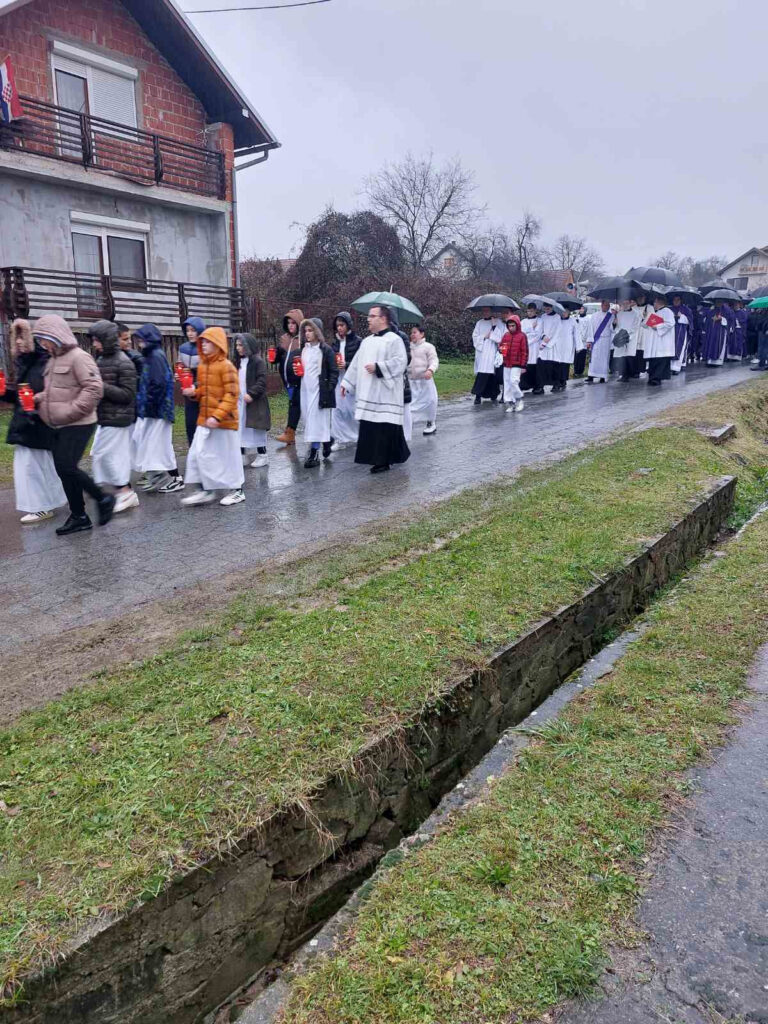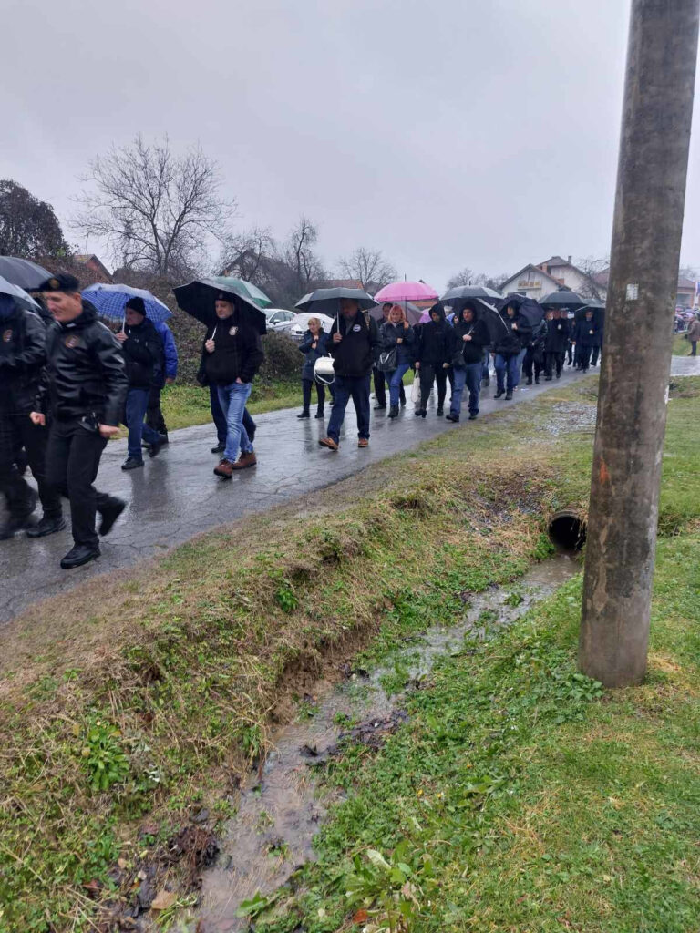 Po kišnom danu sastali smo se na Prebendi gdje nas je pozdravio biskup msgr. Antun Škvorčević koji je izraze posebnog poštovanja i suosjećanja uputio obiteljima voćinskih žrtava i poginulim braniteljima.